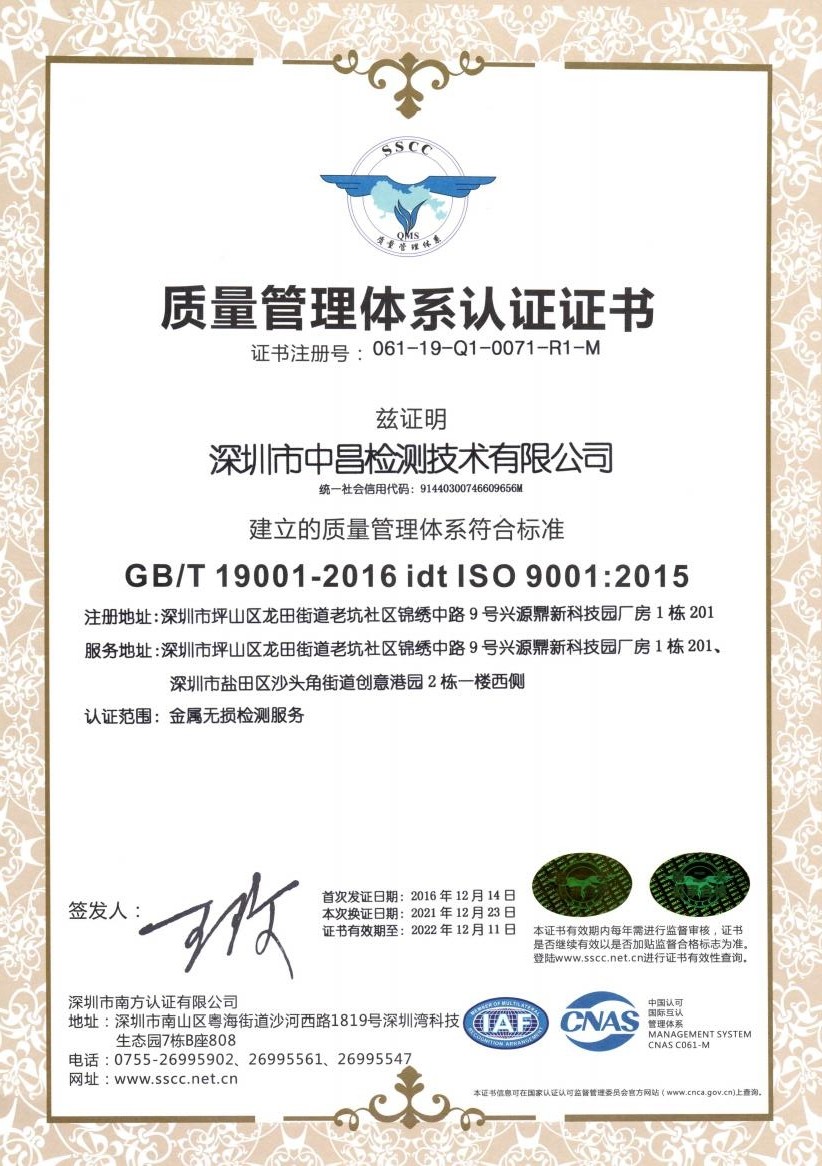 質(zhì)量管理(lǐ)係統認證證(zhèng)書